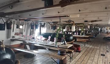 Dine like the crew once did in this historic space, ideal for large gatherings such as parties, gala dinners, and charity balls. Traditional mess tables create an unforgettable experience.